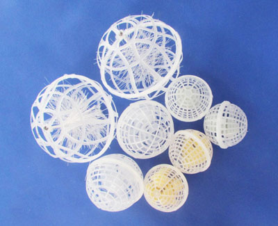 球形懸浮填料, 又稱孔旋轉(zhuǎn)球形懸浮填料 ,是對國內(nèi)處理污水、生物膜法處理技術(shù)采用的多種填料中開發(fā)的最新系列產(chǎn)品。分內(nèi)外雙層球體,外部為網(wǎng)狀球體,內(nèi)部為旋轉(zhuǎn)球體。