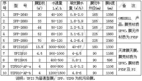 (三)、膜元件選型參數舉例